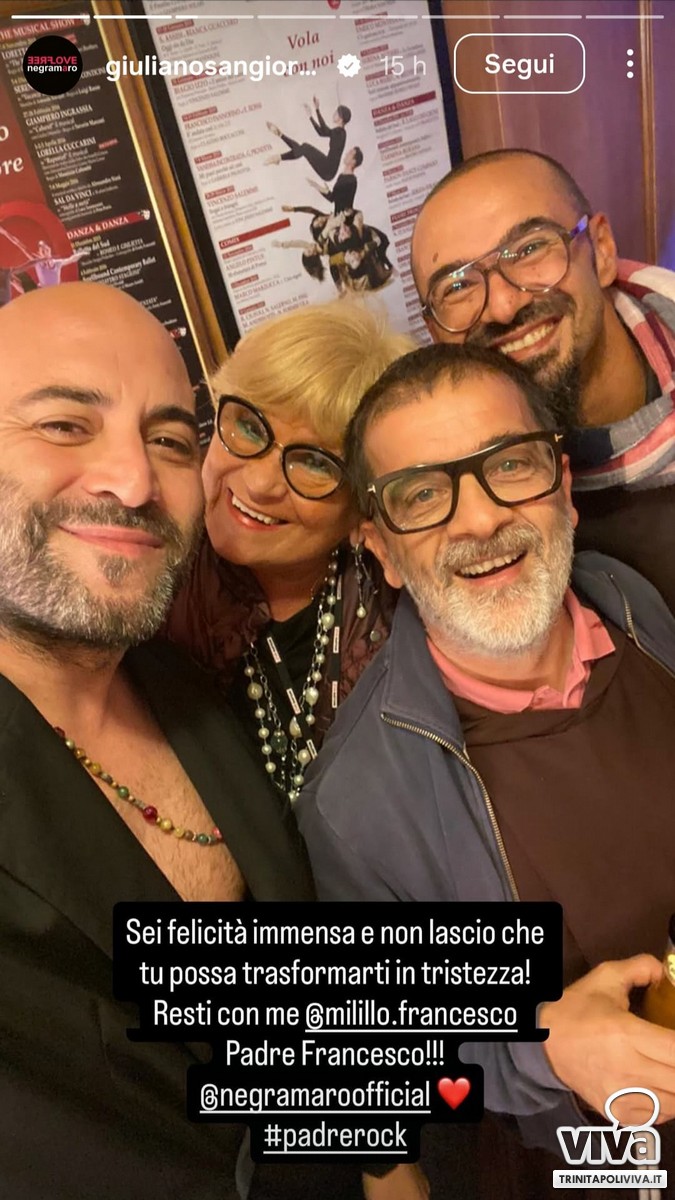 Anche Giuliano Sangiorgi dei Negramaro piange la scomparsa di Padre Francesco Milillo – il 'padre rock' così come viene definito dal cantante in uno dei suoi post social - scomparso nella giornata di ieri 8 febbraio.