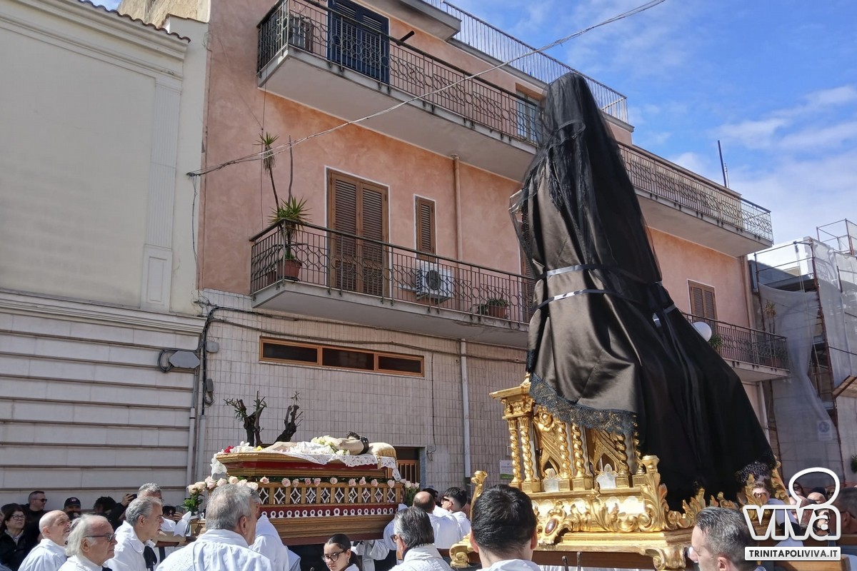 Dalla Chiesa di San Giuseppe, situata di fronte alla Chiesa Madre, sono quindi usciti i simulacri della Veronica e di "Gesù che porta la Croce", portati dalla Confraternita di San Giuseppe. A seguire, dalla Chiesa Madre, hanno fatto il loro ingresso in processione i simulacri di "Gesù Morto" e dell'Addolorata, portati dalla Confraternita del Santissimo Sacramento.