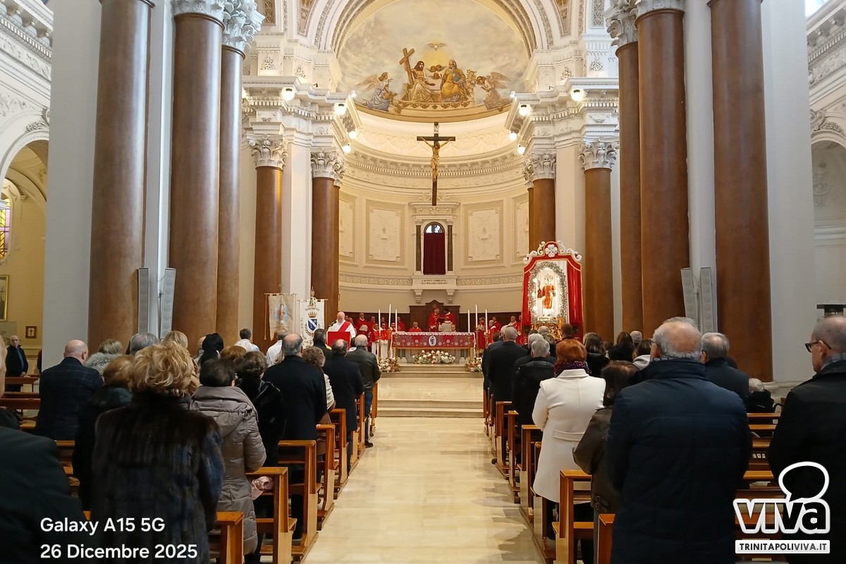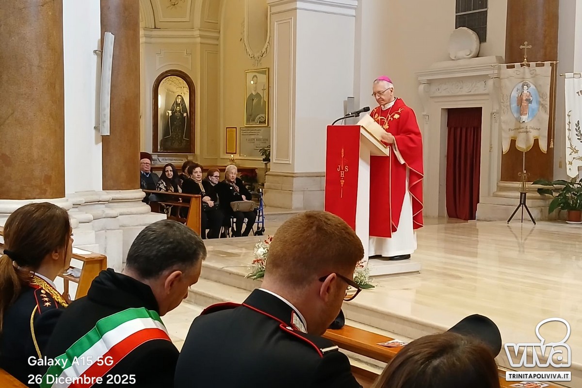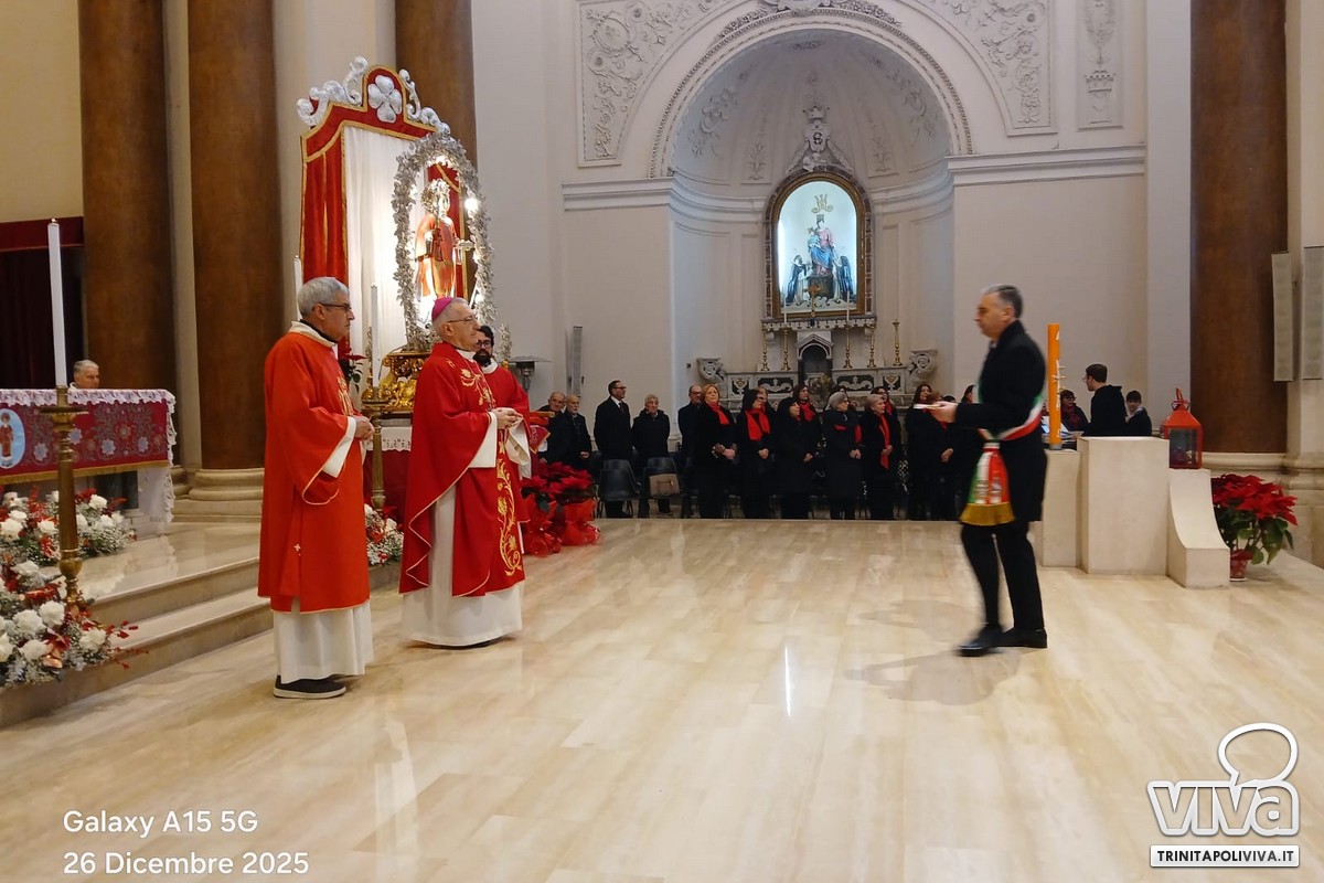 Nella giornata del, 26 dicembre 2025, la Comunità di Trinitapoli ha vissuto un momento di profonda partecipazione e devozione in occasione della Solennità di Santo Stefano Protomartire, patrono della Città. Presso la Chiesa Madre della Parrocchia di Santo Stefano, si è svolta la Santa Messa solenne concelebrata, presieduta da S.E. Mons. Leonardo d'Ascenzo, Arcivescovo, alla presenza di tutti i sacerdoti della città.