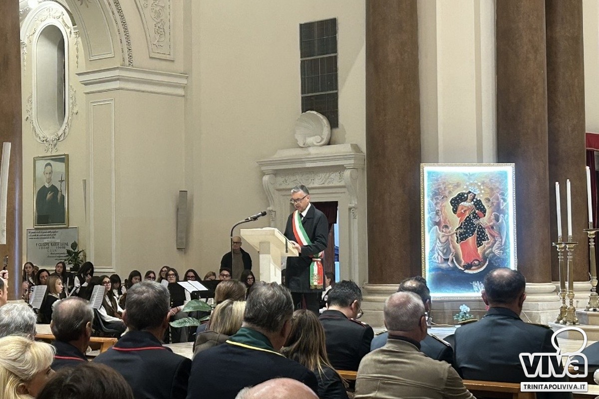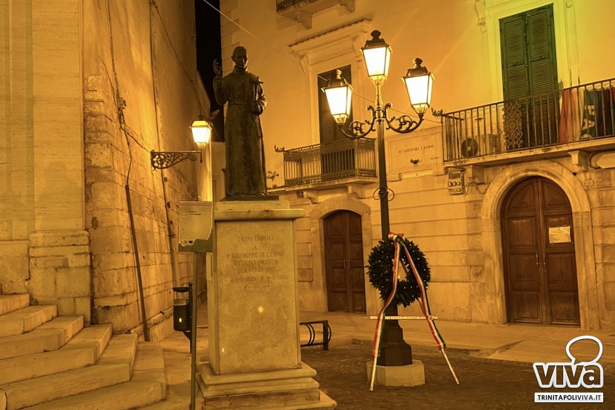 La cerimonia si è svolta attraverso un momento di preghiera, alle ore 18, presso la parrocchia di Santo Stefano Protomartire, officiata da Monsignor Stefano Sarcina, a cui hanno preso parte il sindaco di Trinitapoli Francesco di Feo, la giunta ed il consiglio comunale, il comandante della locale stazione dei Carabinieri, il comandante della Polizia locale, autorità civili e militari, associazioni combattentistiche e di volontariato, Croce Rossa Italiana e varie associazioni del territorio.
